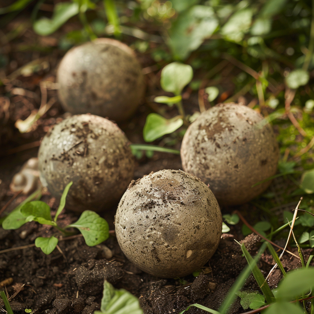 Uma bomba de sementes feita de argila e composto orgânico.Essas esferas, do tamanho de um ovo de galinha, são cuidadosamente moldadas para proteger e nutrir as sementes até que estejam prontas para germinar.